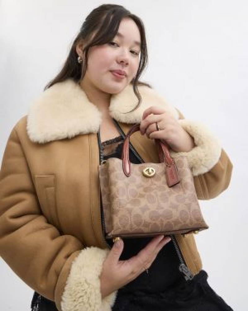 Coach_signature apricot collection willow small tote 24 crossbody top handle bag with double box premium quality